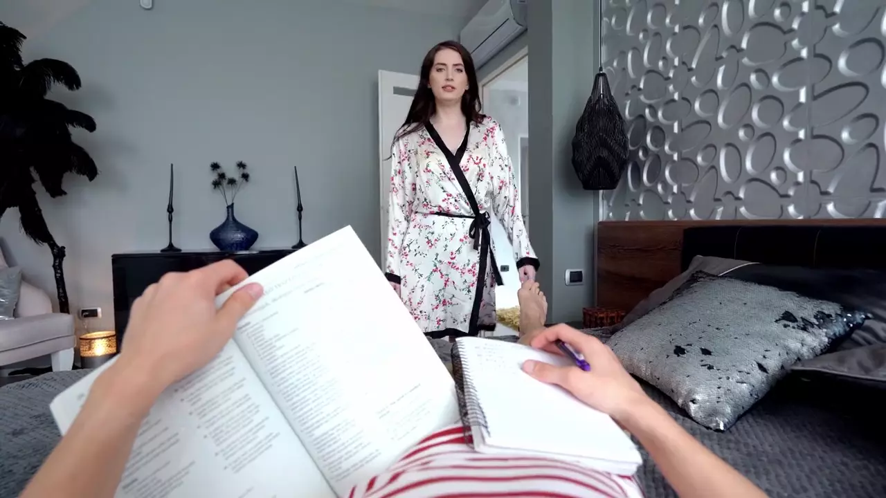 Stepmom Aria Carson Helps Stepson With His Biology Exam By Removing Her Clothes For Every Right Answer