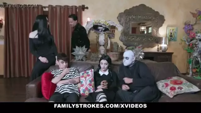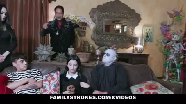 Familystrokes - Costumed Teen (Kate Bloom) And Milf (Audrey Noir) Get Fucked Hard And Rough For Halloween