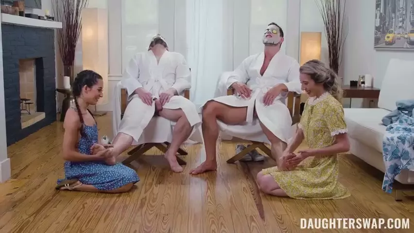 Lucky Stepdads Enjoys Foursome With Their Teen College Going Stepdaughters Chloe Temple And Freya Von Doom