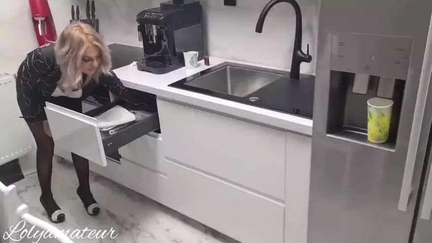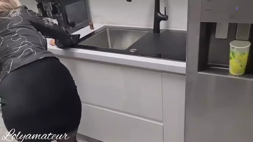 Mom Stuck Her Hand In The Kitchen And Make A Good Dell With Son